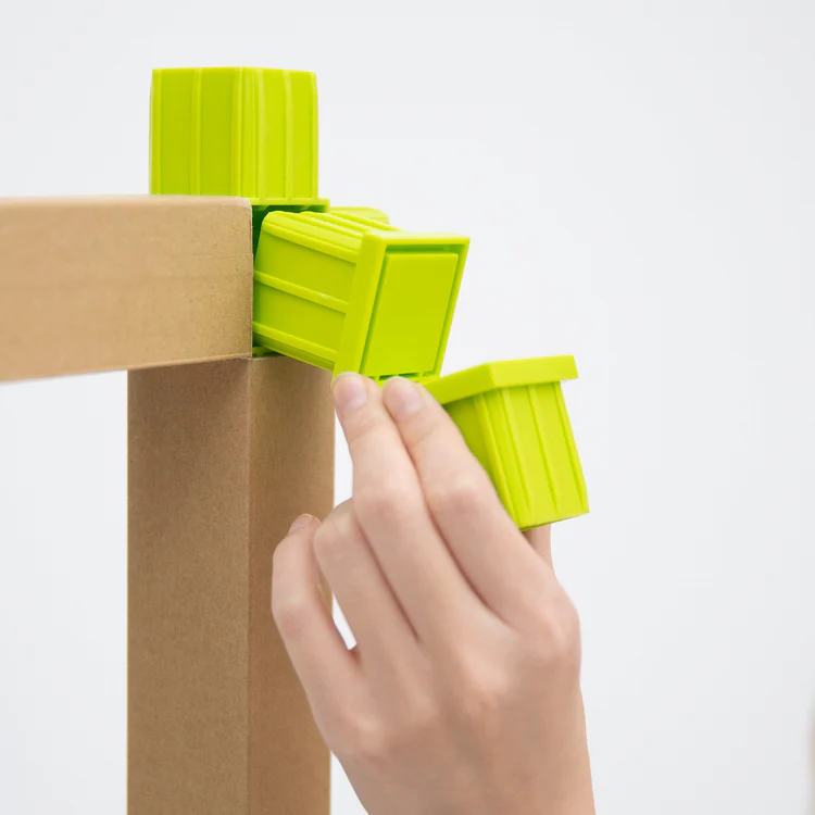 カカポは、高強度の紙管と3種類のジョイント、壁材を組み合わせて、家の中に建築的な空間を作ることのできるシステム。実用としてはもちろん、空間や建築を遊ぶことのできるツールでもある。